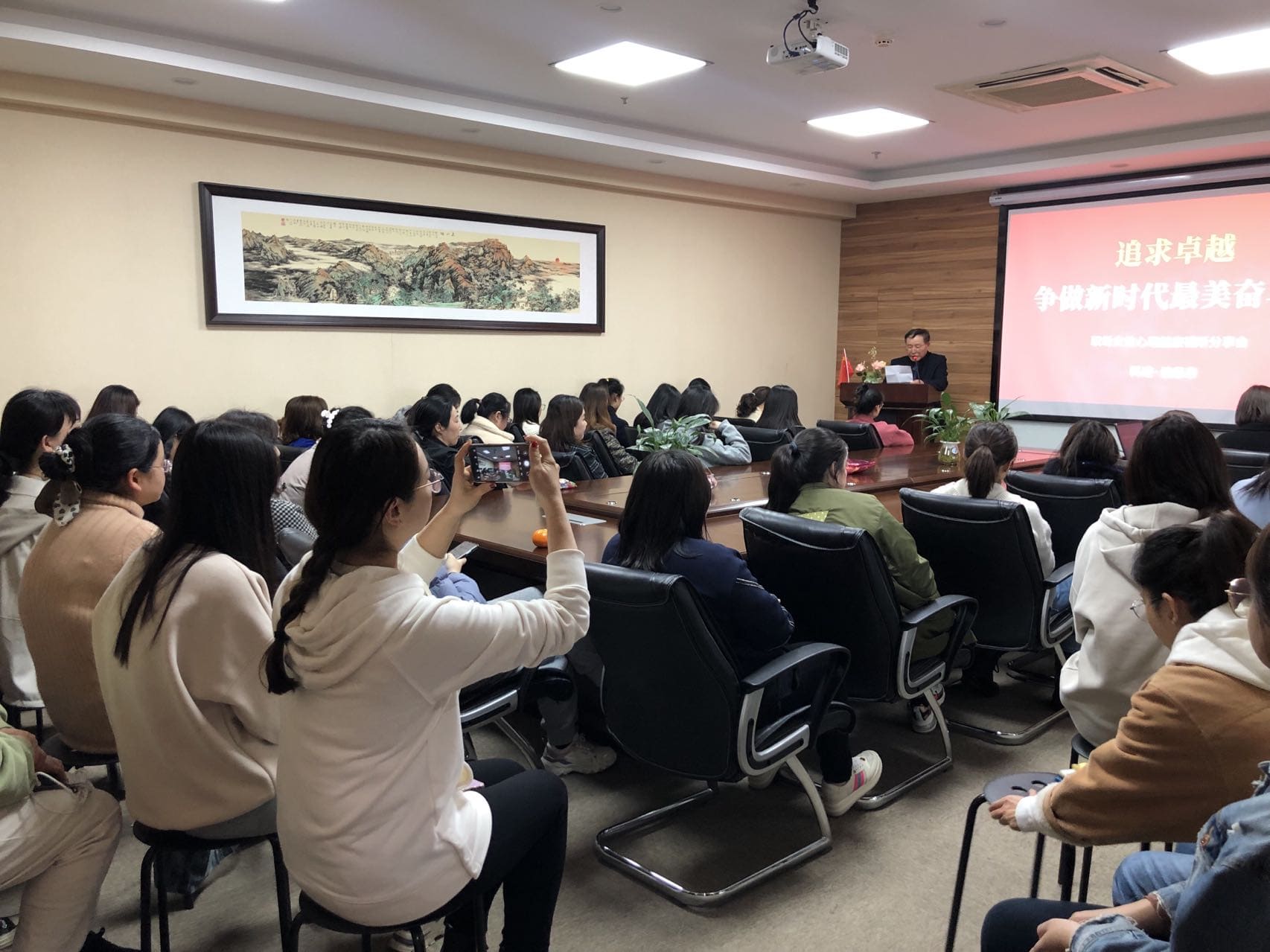 幸福女人,健康相伴?;顒右婚_始,女職工們觀看了《尋幸福源泉,做幸福女性》心理健康視頻。隨后是本次活動的主題,先后邀請了王子梅、賈槚、孫靜等十位女職工代表上臺發(fā)言,她們分別就“如何處理好工作與家庭關(guān)系”、“怎樣調(diào)節(jié)工作壓力”、“怎樣做自強不息的新時代奮斗者”等話題,交流分享了自己的見解和感悟,代表們的精彩發(fā)言,感人至深,震撼心靈,贏得了陣陣掌聲。